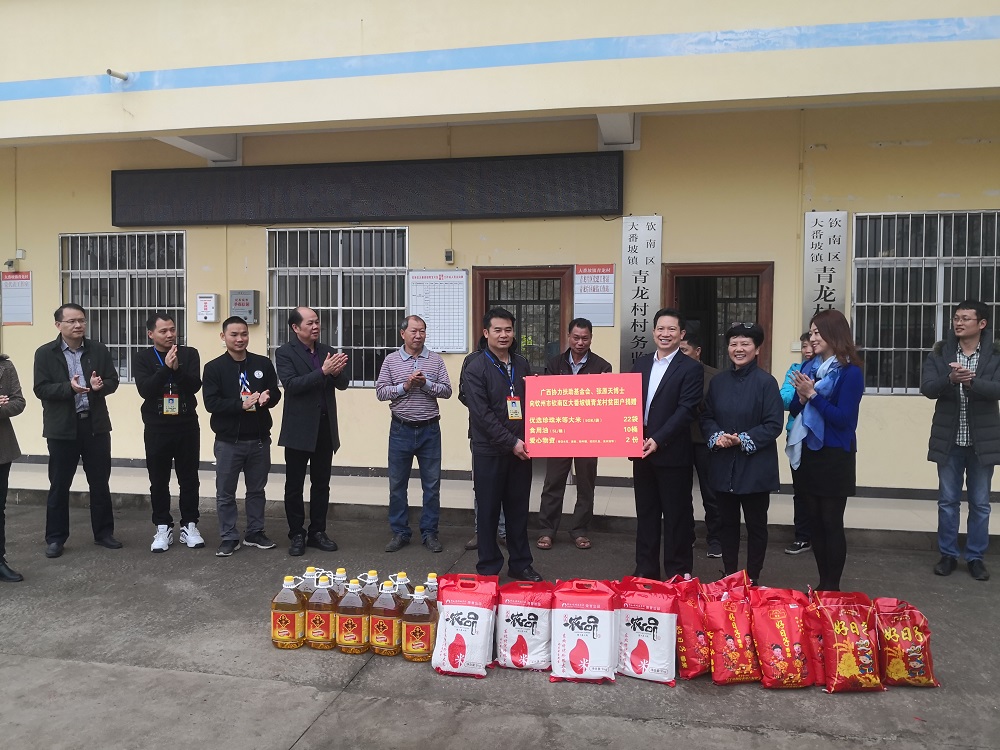 1月16日,钦州市侨界政协委员张原天博士一行来到钦州市钦南区大番坡镇青龙村,为当地村民送去了大米、油等年货物资。共同参与慰问的人员有:广西协力扶助基金会理事万朗,加拿大华邺投资发展有限公司总裁、中国侨联青委会常委黄晔华,钦州市政协副秘书长、办公室主任刘如明,钦州市侨联主席施红等人。