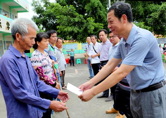 6月1日,灵山县政协主席宋光毅一行到灵山政协扶贫村三海街道那银村举行“张原天博士奖学金”春季学期捐助仪式。并为那银小学送上“六一”礼物。受奖学生及贫困学生家长亲手接过县领导等送来的奖学金。